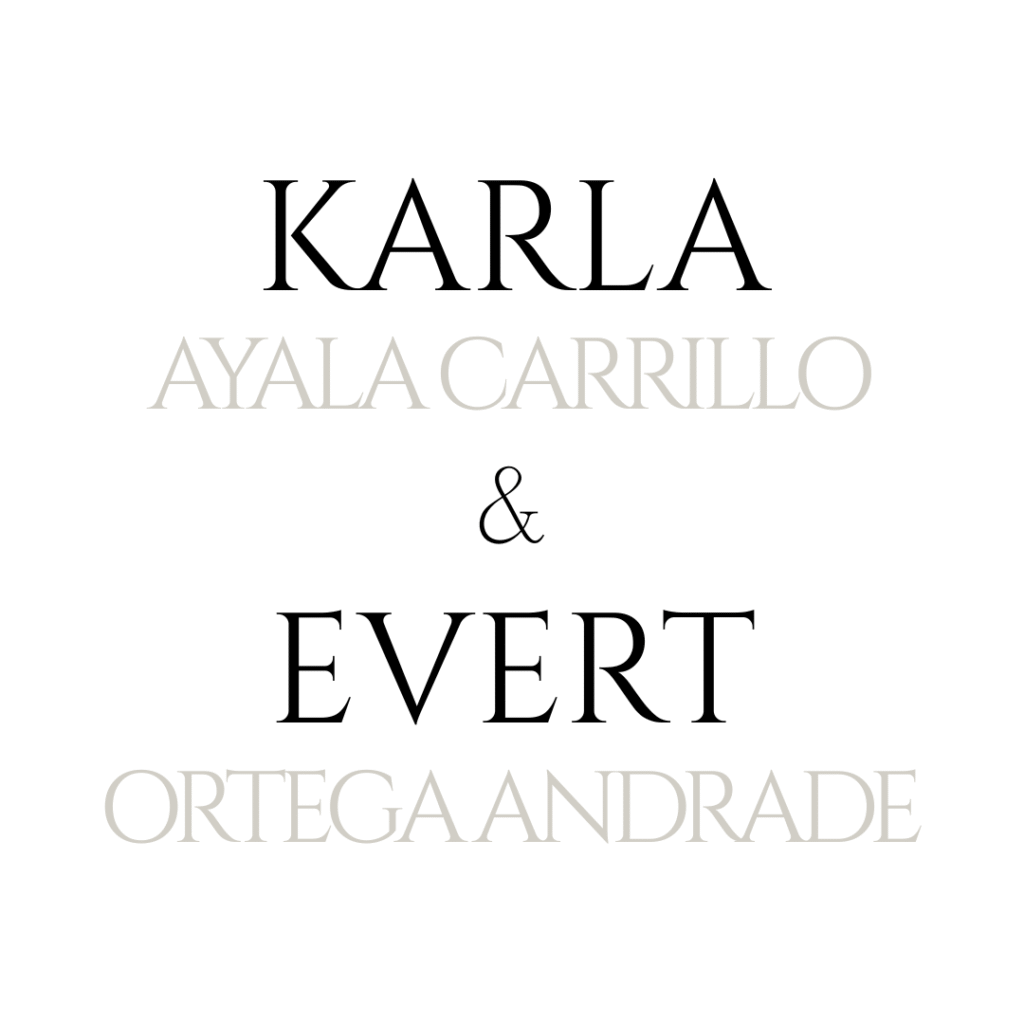 Escucha nuestra canción favorita RAYEDENM by MAYEFIG Con la bendición y el amor de nuestro padres Elisa Carrillo Barrios Carlos Ayala Castillo Yolanda Andrade Aguilar Ever Ortega Carrillo Nosotros Con el corazón lleno de ilusión, tenemos el enorme privilegio de invitarte a compartir con nosotros el día en que uniremos nuestras vidas, el próximo… 14.03.2026 Durango, México Faltan My countdown itinerario Sábado, 14 de marzo 2026 19:00 hrs Ceremonia Civil HACIENDA "MI RANCHITO" Carretera Durango-Mazatlán Km.242 Ejido Los Ángeles, Lerdo, Dgo. VER UBICACIÓN 20:45 hrs RECEPCIÓN HACIENDA "MI RANCHITO" Carretera Durango-Mazatlán Km.242 Ejido Los Ángeles, Lerdo, Dgo. VER UBICACIÓN Ceremonia Civil 19:00 hrs Coctel de bienvenida 20:00 hrs Acceso al salón 20:45 hrs Entrada de novios 21:00 hrs Vals 21:10 hrs Cena 21:40 hrs Baile 22:30 hrs Fin del Evento 02:00 hrs Dress Code Formal: Indispensable en color negro. Ejemplo damas Ejemplo caballeros Mesa de Regalo Lo más valioso para nosotros es celebrar este día contigo. Si deseas hacernos un detalle especial, te compartimos nuestra mesa de regalos. Ver mesa Sears Ver mesa Amazon Ver Mesa Liverpool Solo adultos Celebramos este día en un evento solo para adultos. Gracias por comprender. RSVP Por favor, confirma tu asistencia en el siguiente botón. Confirmar Asistencia instagram Comparte tu mejor momento con nosotros. Al subir tus historias, agrega nuestro hashtag.#LosOrtegaAyalaWedding Instagram Entre Cuatro Letras © 2025 | Todos los derechos reservados Facebook Whatsapp